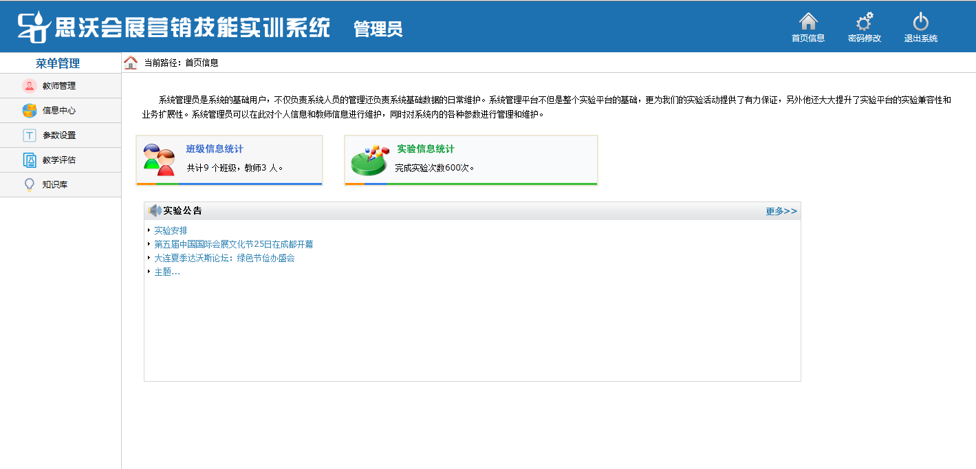 管理(li)(li)員(yuan)包含(教(jiao)室管理(li)(li),信(xin)息中心,參數(shu)設置(zhi),教(jiao)學評估(gu),知識(shi)庫等模塊)