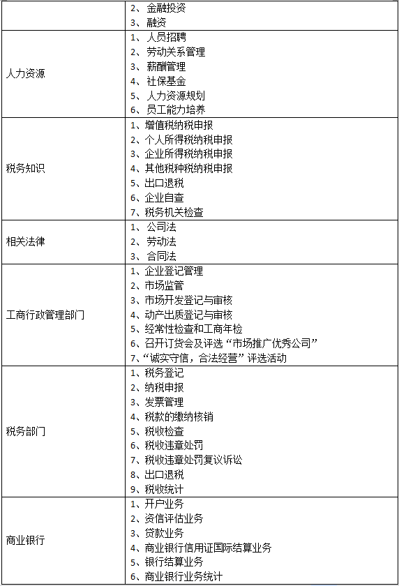 B、含(han)蓋專(zhuan)業(ye)(ye)(ye)(ye)(ye)(ye)廣泛:平臺實(shi)現(xian)以崗位替代專(zhuan)業(ye)(ye)(ye)(ye)(ye)(ye)的模(mo)式(shi),有(you)企業(ye)(ye)(ye)(ye)(ye)(ye)管(guan)(guan)理(li)者、銷售、采(cai)購(gou)、生產、人力資(zi)源、財務人員(yuan)、投(tou)融資(zi)、倉儲(chu)、外貿業(ye)(ye)(ye)(ye)(ye)(ye)務員(yuan)、行政辦事人員(yuan)等(deng)等(deng)幾(ji)十個崗位,融合的專(zhuan)業(ye)(ye)(ye)(ye)(ye)(ye)有(you)企業(ye)(ye)(ye)(ye)(ye)(ye)管(guan)(guan)理(li)、會計、工商(shang)管(guan)(guan)理(li)、物(wu)流、金融、國際(ji)貿易等(deng)多個專(zhuan)業(ye)(ye)(ye)(ye)(ye)(ye)。