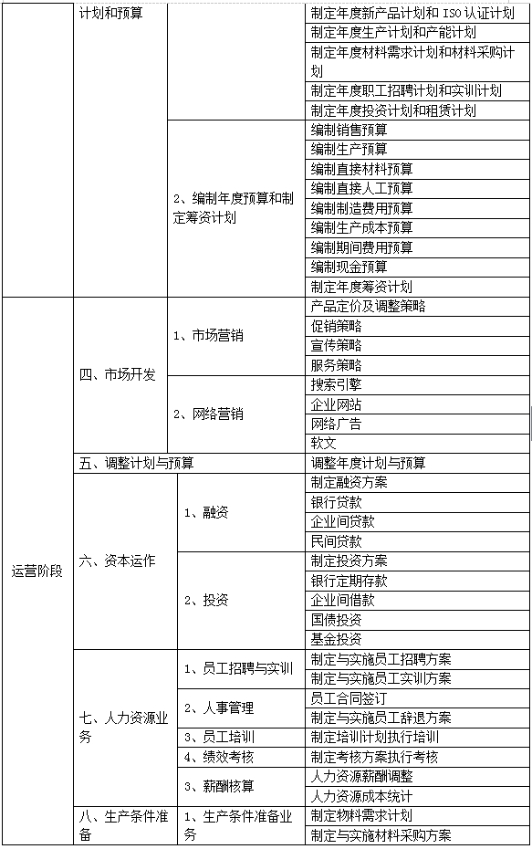 跨專(zhuan)業(ye)(ye)(ye)平(ping)臺(tai)主要(yao)由搭建平(ping)臺(tai)運行(xing)(xing)(xing)環境(jing)、制(zhi)造(zao)企(qi)(qi)業(ye)(ye)(ye)運營、行(xing)(xing)(xing)政業(ye)(ye)(ye)務(wu)和金(jin)融業(ye)(ye)(ye)務(wu)等(deng)幾大(da)(da)部(bu)分組(zu)成。以(yi)現(xian)代制(zhi)造(zao)行(xing)(xing)(xing)業(ye)(ye)(ye)為(wei)藍本(ben),設(she)置總經理辦(ban)(ban)(ban)公室(shi)、銷售(shou)部(bu)、生產部(bu)、采購部(bu)、倉儲部(bu)、外(wai)(wai)貿(mao)部(bu)、市場(chang)(chang)部(bu)、財務(wu)部(bu)、人才資源部(bu)、企(qi)(qi)業(ye)(ye)(ye)投資融部(bu)等(deng)十大(da)(da)制(zhi)造(zao)企(qi)(qi)業(ye)(ye)(ye)職能部(bu)門(men)(men)(men);真實模(mo)擬(ni)行(xing)(xing)(xing)政辦(ban)(ban)(ban)事部(bu)門(men)(men)(men),提(ti)供工商(shang)局(ju)(ju)(ju)、稅務(wu)局(ju)(ju)(ju)、會計事務(wu)所、銀行(xing)(xing)(xing)、物(wu)流、保險公司、貸代公司等(deng)辦(ban)(ban)(ban)事場(chang)(chang)所;系(xi)統(tong)虛(xu)擬(ni)扮演公安局(ju)(ju)(ju)、質量與(yu)(yu)技術監督局(ju)(ju)(ju)、勞(lao)動與(yu)(yu)社會保障局(ju)(ju)(ju)、原材料(liao)供應(ying)商(shang)、海關、商(shang)檢、外(wai)(wai)匯管理局(ju)(ju)(ju)、船公司等(deng)服(fu)務(wu)性部(bu)門(men)(men)(men)行(xing)(xing)(xing)業(ye)(ye)(ye)。攘(rang)括(kuo)了與(yu)(yu)制(zhi)造(zao)行(xing)(xing)(xing)業(ye)(ye)(ye)有關的(de)所有相關行(xing)(xing)(xing)政辦(ban)(ban)(ban)事部(bu)門(men)(men)(men)和服(fu)務(wu)性行(xing)(xing)(xing)業(ye)(ye)(ye)。