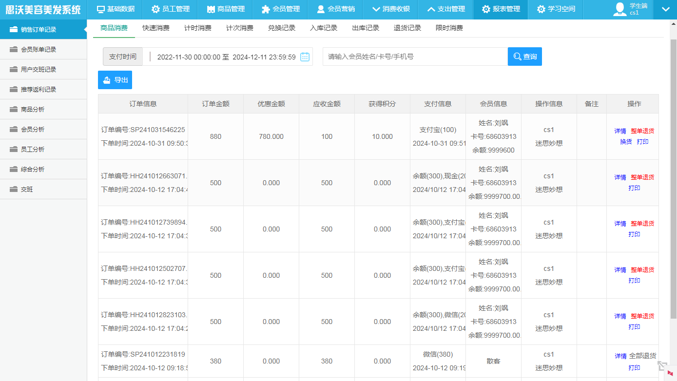 思沃美(mei)(mei)容美(mei)(mei)發(fa)模擬實(shi)(shi)(shi)訓(xun)系(xi)(xi)統分(fen)為管理(li)員、教(jiao)(jiao)師(shi)(shi)、學(xue)(xue)生(sheng)(sheng)三種角色(se),教(jiao)(jiao)師(shi)(shi)設置基礎數據及考(kao)核(he)項(xiang)分(fen)數,學(xue)(xue)生(sheng)(sheng)真實(shi)(shi)(shi)模擬美(mei)(mei)容美(mei)(mei)發(fa)實(shi)(shi)(shi)際操(cao)作(zuo)功(gong)能(neng)(neng),系(xi)(xi)統自動給出評分(fen),生(sheng)(sheng)成考(kao)核(he)成績,供教(jiao)(jiao)師(shi)(shi)進(jin)行成績導(dao)出,教(jiao)(jiao)師(shi)(shi)還可跳轉到學(xue)(xue)生(sheng)(sheng)端查(cha)看學(xue)(xue)生(sheng)(sheng)的(de)操(cao)作(zuo)情況。 系(xi)(xi)統涵蓋店鋪員工(gong)、商品(pin)、會員、營(ying)銷(xiao)、消(xiao)費(fei)收銀、費(fei)用(yong)支出、報表統計等(deng)主要功(gong)能(neng)(neng),還提供了豐富的(de)美(mei)(mei)容美(mei)(mei)發(fa)資源庫及在(zai)線考(kao)試(shi)等(deng)功(gong)能(neng)(neng)。